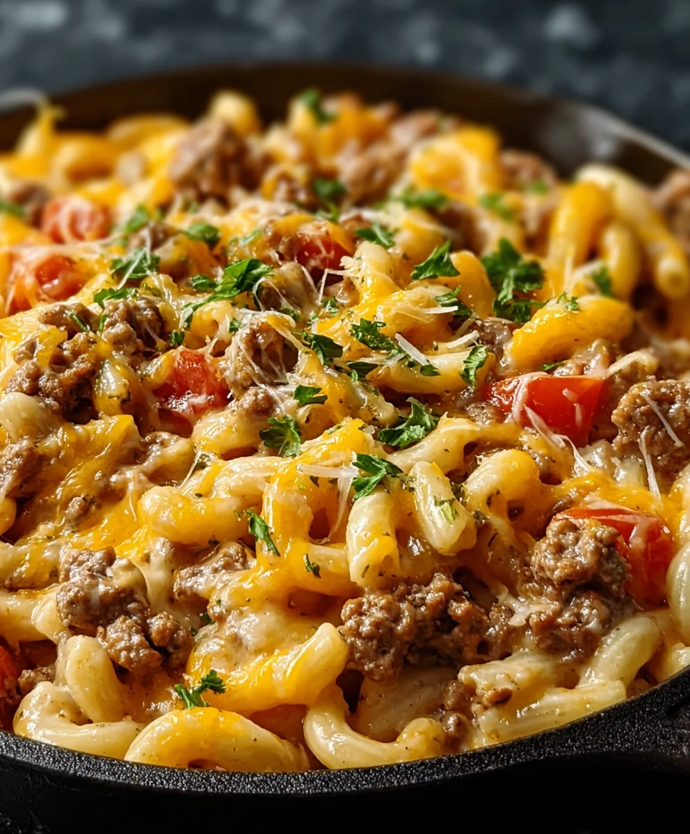 Loaded Beef Cheeseburger Alfredo Pasta: Ultimate Creamy