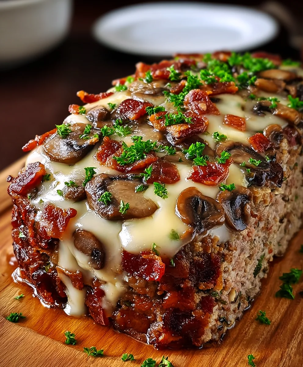 The Ultimate Beef Bacon Mushroom Swiss Cheese Meatloaf